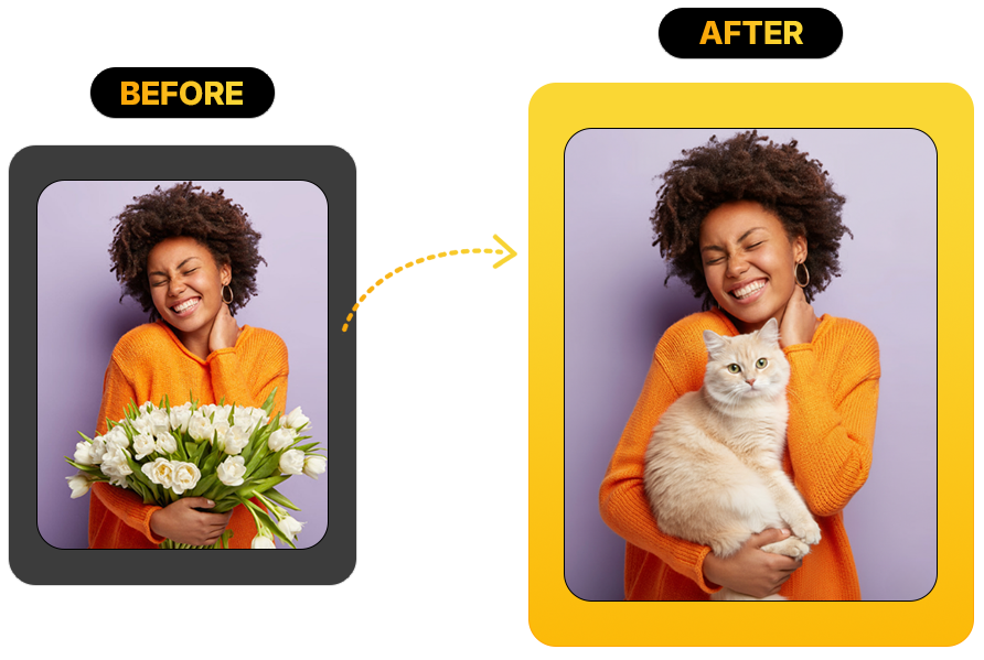 PROMPT: Replace the flowers in the image with a cat, ensuring that all other elements of the original image remain unchanged.