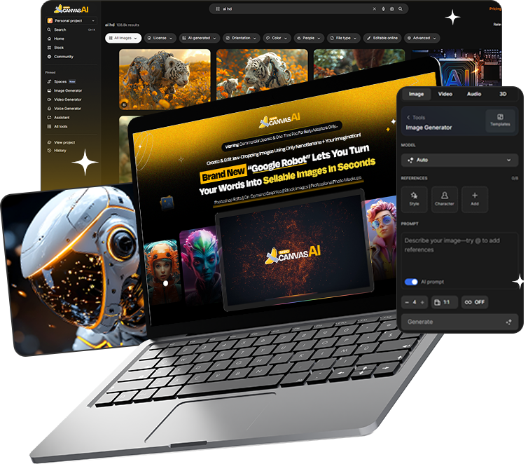 NanoCanvas AI creates 100% Commercial & royalty-free graphics & images that DON’T exist anywhere else!